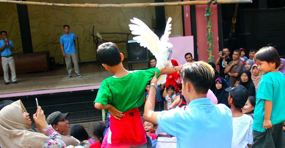 Interaksi satwa dengan zookeeper di Kebun Binatang Bandung tidak sebatas pada pemberian pakan dan perawatan kesehatannya, namun juga pada pertunjukkan satwa. Burung kakatua koki, burung macaw biru kuning, burung rangkong badak, binturong, anjing pudel dan marmut menjadi bintang pada pertujukkan satwa.
